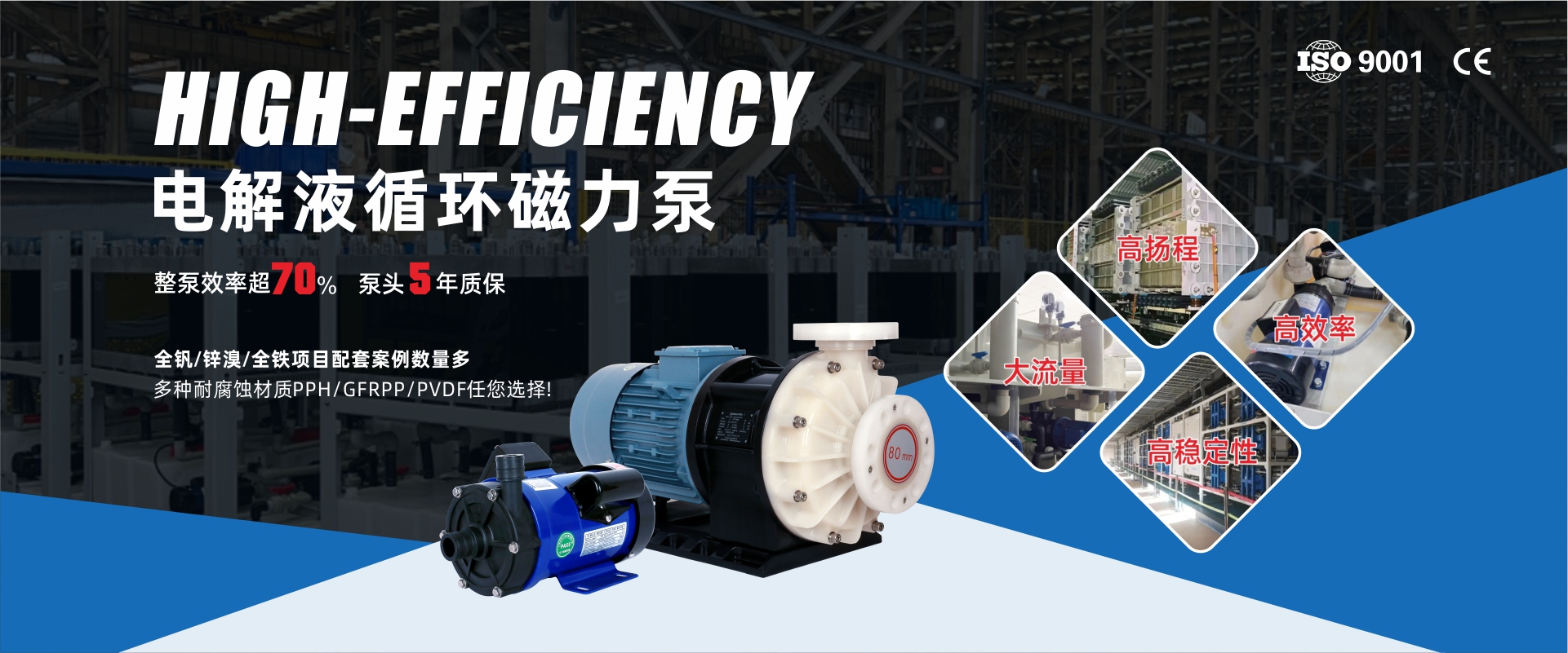 優選PPH、PVDF、CFRETFE等多種泵體材質,耐受PH1~14酸堿藥水,零泄漏;掌握磁力泵多項核心技術,制造工藝嚴謹,效率可達70%+,高效率、低能耗,可量身定制;高品質磁力泵精細工藝制作,產能達15萬套/年,可平行替代進口磁力泵。